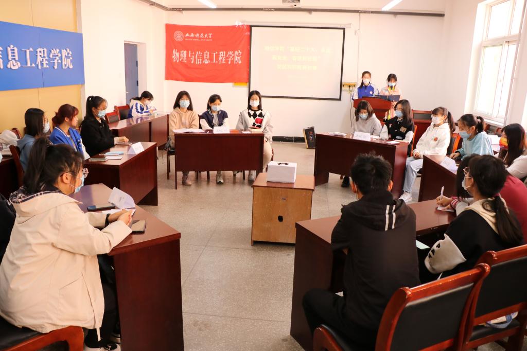 4月3日,院团委办公室在实验楼S202会议室举办了以“喜迎二十大,永远跟党走,奋迎新征程”为主题的党团知识竞赛。大一、大二部分同学参加了此次竞赛。本次竞赛由团委办公室志愿者贾颖和耿鑫雨主持。