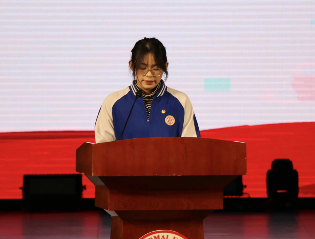 伴随着嘹亮的国歌,2023级新生入团再教育启动仪式正式拉开序幕。