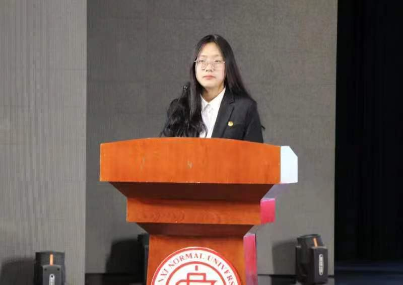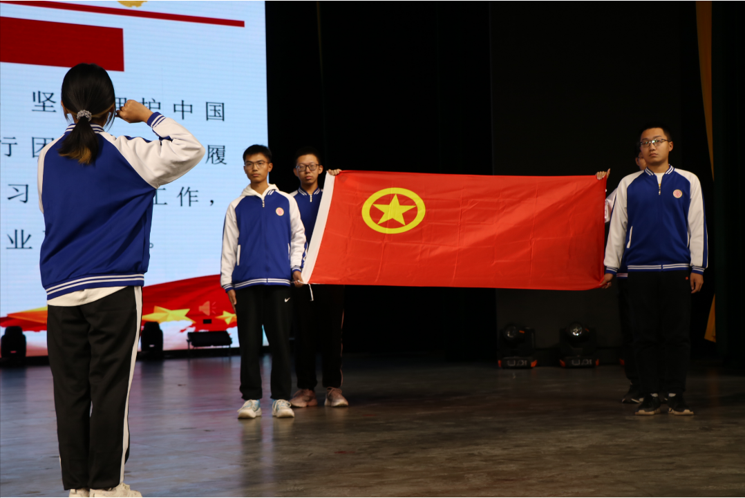 会上,同学们一共观看了庆祝中国共产主义青年团成立100周年宣传片《共青春》主题曲《有我》以及为迎接团十九大发布的宣传片《青春》两个视频。随后,新生团员代表王晓颖发言,她分享了作为团员青年应该有的责任和担当,以及加入共青团所带给她的成长和蜕变,并带领全体新生团员重温入团誓词,让共青团员的使命进一步深入人心。随后院团委办公室负责人段志颖介绍了团旗、团徽、团歌的通用规格和使用情形,讲述了团员享有的权利和应尽的义务,并希望大家牢记作为一名共青团员的责任和担当。
