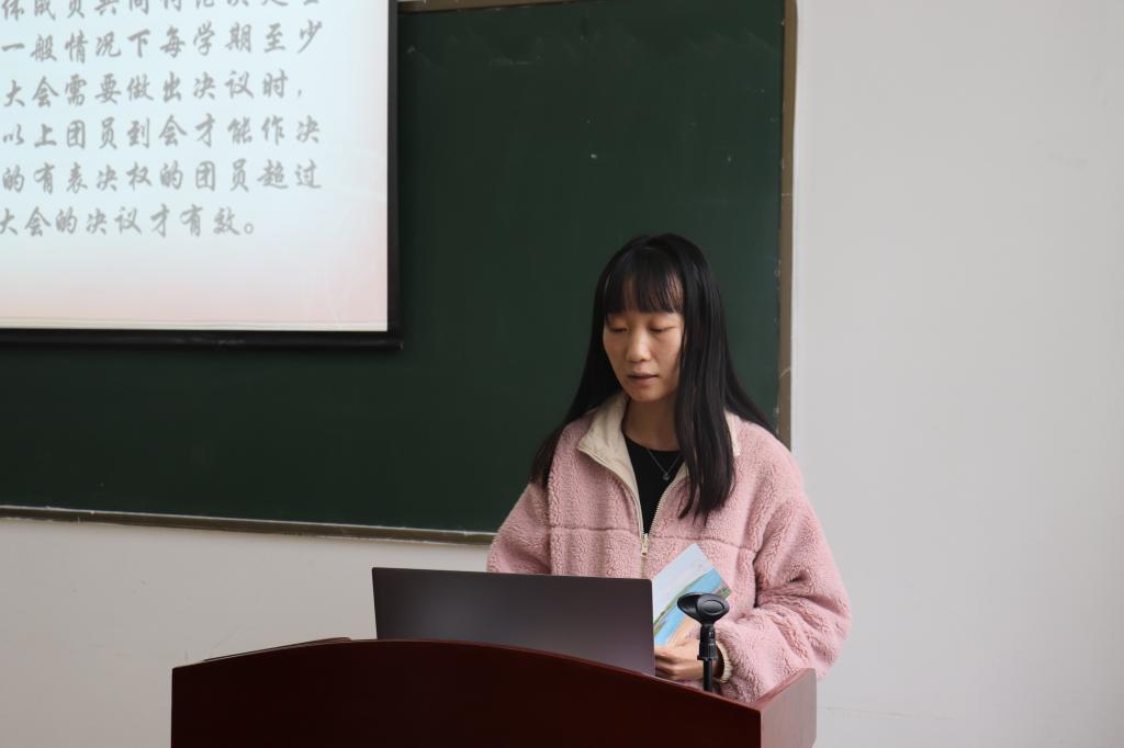 活动中,冀宇琴对三会——支部团员大会、支部委员会、团小组会;两制——团员教育评议制度、团员年度团籍注册制度;一课——团课的内容进行了详细介绍。着重讲解了支部团员大会的主要任务和团员教育评议制度中需要重点把握的环节。最后,她强调落实“三会两制一课”是共青团保持和提升政治性、群众性的重要举措,也是对共青团员最基本的必然要求。各班团支部要严格按照各项制度要求,组织落实好“三会两制一课”。