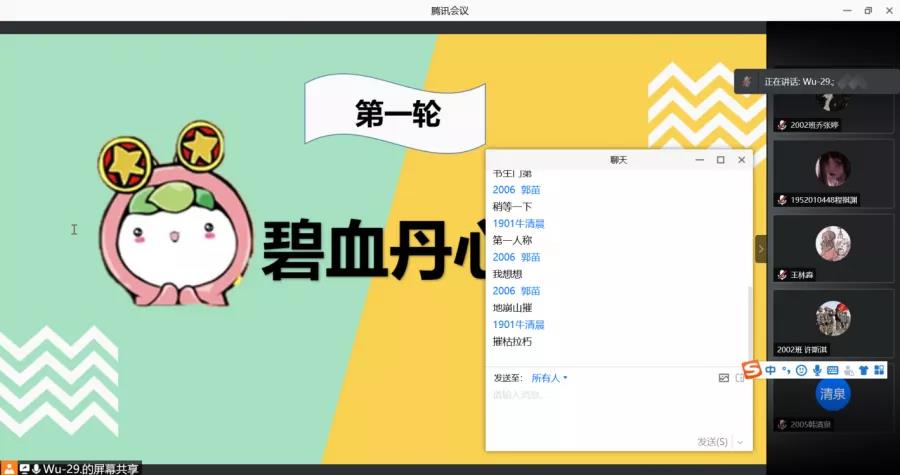 本次活动分为成语接龙、看图猜人物、线上挑战答题三个环节,丰富多彩、寓教于乐的形式吸引了众多同学积极参与。活动中,同学们认真思考、争先抢答,重温五四运动、感悟五四精神,在知识的学习和分享中增进了爱党敬党的情感,增强了同学们的民族责任感和使命感。(文/2003班 张馨文)