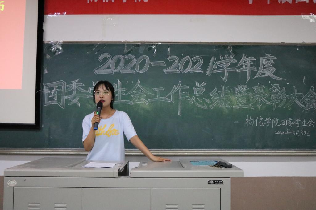 会上,各部门代表依次进行发言,结合ppt汇报了本部门一学年来的工作情况、取得的成绩、存在的不足以及对未来的期望。院员工会主席团成员尤天奇对员工会一学年的工作开展情况进行了总结,指出工作中存在的问题,分析了原因并给出建议。院团委(员工)副书记李欣越宣读了2020—2021学年度院团委员工会优秀志愿者名单。院团委负责人马丽娜老师为优秀志愿者颁奖并做了总结讲话。她向获得表彰的优秀志愿者表示了热烈的祝贺,向勤奋学习、扎实工作的全体团委员工会工作人员表示衷心的感谢。同时她也对全体成员提出了希望和要求:一是要不忘初心,勤于学习,更好地提升自己,提升为同学们服务的能力;二是要集思广益、团结合作,把每一项工作做精作细,打造精品活动;三是要严于律己,争做表率,维护好学团干部的良好形象。