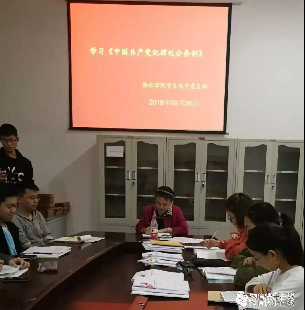 2018年9月26日晚6:50,公司员工电子党支部在四号楼一层会议室召开《中国共产党纪律处分条例》专题学习会议,全体党员、预备党员共计13人参加了会议,会议由支部书记崔艳主持。