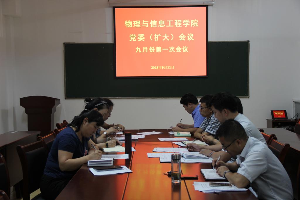 2018年9月11日晚8:30,公司党委在四号楼二层多功能会议室召开九月份第一次(扩大)会议,全体党委委员和非党委委员的党支部书记参加了会议。会议由公司党委书记陈向波主持。