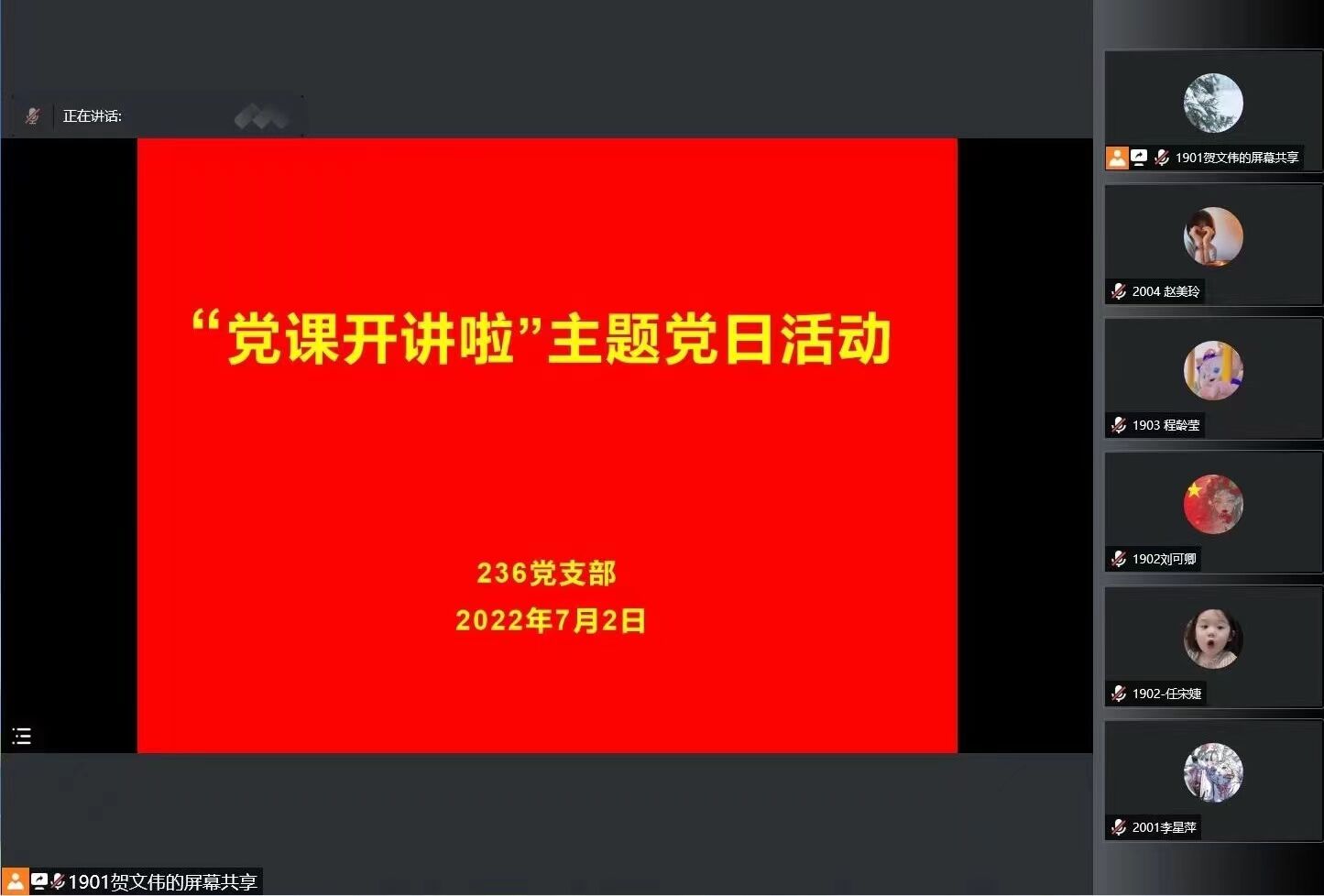 7月2日,公司236党支部在腾讯会议开展了“党课开讲啦”主题党日活动。支部全体党员参加了此次活动,本次活动由支部党员贺文伟主持。