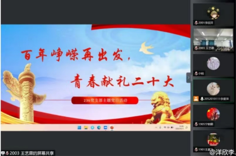 12月3日下午,公司236党支部通过线上线下相结合的方式开展了“百年峥嵘再出发,青春献礼二十大”主题党日活动。本次活动由支部党员李星萍主持,支部全体党员参加了活动。