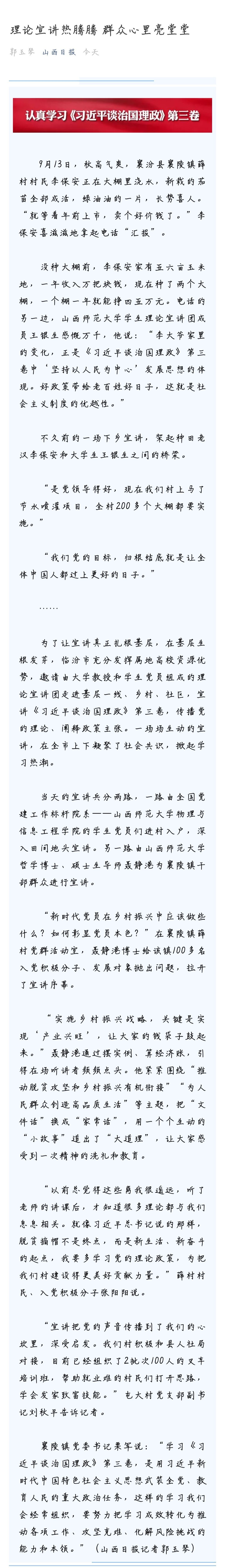 山西日报报道公司236员工理论宣讲团《习近平谈治国理政》第三卷宣讲活动