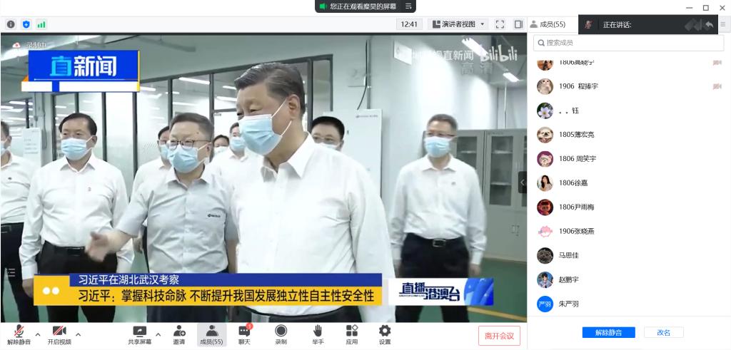 支部书记卫永霞总结道,党员同志要坚持创新,努力发挥工科优势,扎实学好专业知识,提高学习质量,为将来推动科技创新打牢基础。要充分发挥先锋模范带头作用,积极将科技发展新趋势传达给周围的同学。她还提出,作为新时代老员工,要时刻关注国内外科技发展动态,争做新时代科技创新先锋者。