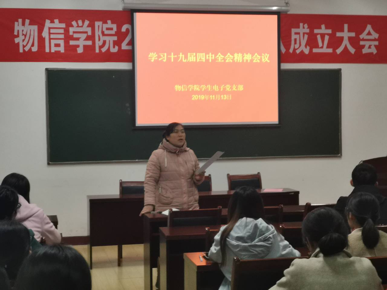 为深入学习贯彻落实党的十九届四中全会精神和习近平新时代中国特色社会主义思想,2019年11月13日晚,公司员工电子党支部在四号楼二层多功能会议室召开了“学习党的十九届四中全会精神”会议,支部全体党员参加了会议,会议由支部书记卫永霞主持。