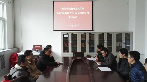 1月4日下午15:00,公司物理学A支部于四号楼一层会议室举办了“弘扬红船精神走在时代前列主题党日活动。支部全体党员参加了这次活动,活动由支部书记李俊生主持。