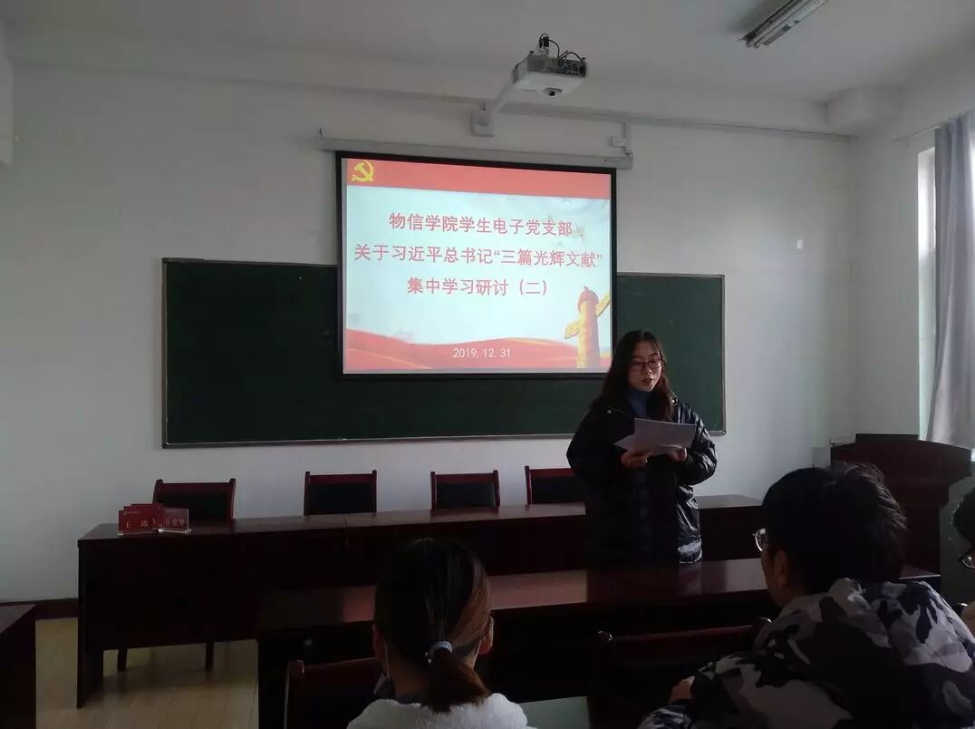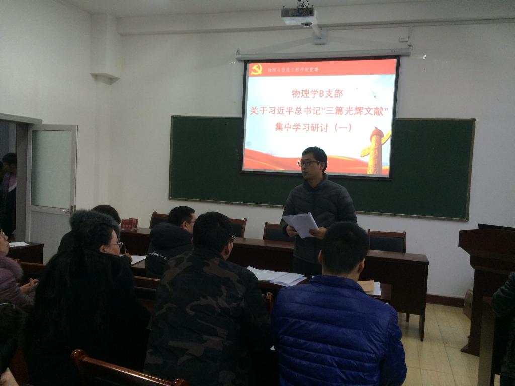 2019年12月27日下午和12月30日下午,物理学B支部全体党员在04208会议室召开了重温习近平总书记“三篇光辉文献”的学习活动。在两次学习活动中,支部书记程留永向支部党员通知传达了公司党委和公司党委关于组织全公司党员干部重温习近平总书记“三篇光辉文献”的通知,并对“三篇光辉文献”进行了领学和导学。支部党员针对三篇文献的内容,认真研读,深入思考,积极讨论,努力领会习近平总书记关于山西省和中部地区发展崛起的各项要求。针对创新驱动,科教兴省,人才强省等战略发表了意见和看法。支部党员吴瑞祥介绍了自己学习文献的心得体会。他指出,太行精神、吕梁精神、右玉精神,既是激励广大党员、干部的革命精神,也是推进生态文明进步的建设精神。三晋大地的发展是在绿水青山中谋取金山银山。党员杨红萍表示,2020年将进入脱贫攻坚的收官之战,中西部地区贫困人口较多,因地制宜地践行以人民为中心的发展思路,加强对“三农”工作的组织领导,以产业带动就业巩固脱贫成果,是打赢脱贫攻坚的重要举措和动力。支部书记程留永号召大家要坚持长期学习,将重温“三篇光辉文献”与 “不忘初心、牢记使命”主题教育问题查摆和整改相结合。要强化落实实践,以“三篇光辉文献”的思想和自己学习心得为指导做好教书育人、科研创新、学业提升等实际工作。要有针对性地制定学习、工作计划,以提高自身水平和能力的同时为公司、公司建设发展做出更大的贡献。