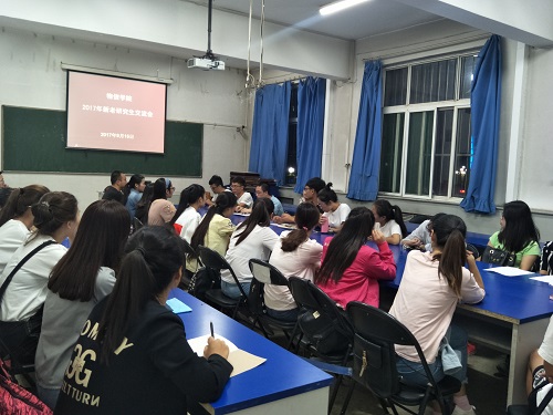 本次交流会受到了广大17级研究生新生的热情关注,会场座无虚席,会议于晚上7:00正式开始。首先,同学们以热烈的掌声欢迎辅导员徐小虎老师的参加,主持人孙贝贝代表所有研二、研三的老生对2017级新生的加入表示热烈的欢迎。接着,徐小虎老师对新生学习生活尤其是安全方面提出了要求。然后研二、研三的学长学姐发表了热情洋溢且发人深省的讲话。院研究生会主席党英华结合自身情况谈到研究生阶段首先要有正确的认识,把学习作为第一要务,其次课外也要通过参加组织活动提高自己的综合素养和办事能力,如全国教师技能大赛,参观革命老区等等,最后谈到要有明确的规划,有针对性有计划的学习。15级的郑一那学姐和任茂群学长根据自身经历和体会,提到要从研一就要努力打好基础,合理把握时间,提醒同学们要在研一就做好发表文章的准备。15级的邵中华学长和王福军学长鼓励同学们要勇于参加实践活动,提高自己的各方面能力。15级樊丽晶师姐分享了她两年多研究生的心路历程,引起了全体与会人员的强烈共鸣。