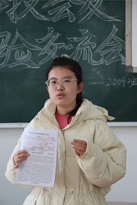 会上,王泽辉首先对已经通过英语四级的同学们表示祝贺,他希望同学们能根据个人情况,制定适合自己的英语学习方法,通过自己日复一日的努力,实现英语水平的提高。随后,班内通过四级考试的五位同学赵心悦,赵美玲,李鑫,冯昕、薛旭琴从时间分配、学习重点和做题方法三个方面,围绕听力、阅读、翻译、写作四种题型,分别为大家分享了自己备考过程中总结的经验和技巧。赵美玲在发言中提到,备考时就要注意时间分配问题,精准把控做题时间,才能在考试过程中不自乱阵脚,以更好的心态面对考试。
