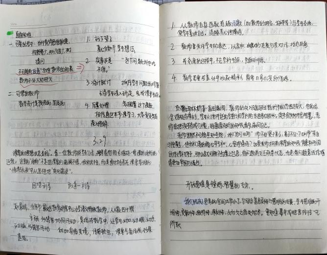 我的指导老师于老师,也是我们公司物理学专业毕业的学长,在没课没行政任务的时候都在读书。初去实习,于老师便给了我好几本物理学科普类和教育类的书籍去阅读,时不时的我们还对书中的内容进行交流,我一边读一边做笔记,也运用到了和员工的交往中。实习小伙伴虽然是不同学科,但也会彼此交流自己的教学体会,所以我们互相分享,张泽林同学给我们分享《名师教学机智例谈》的语文卷,让我感受到不同学科的之间灵感的碰撞。