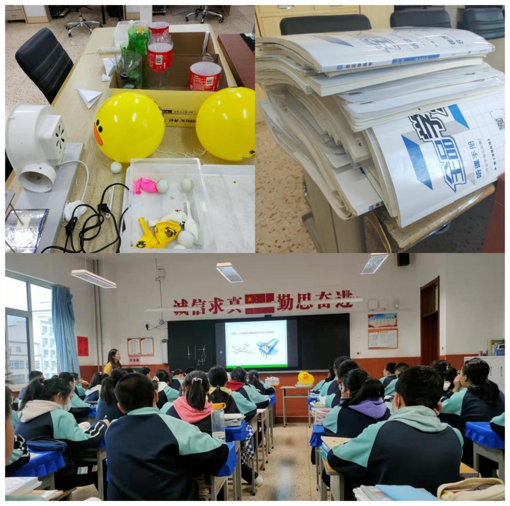 后来陆陆续续我有了一些讲课机会,我在一次次的进步中也得到了老师的表扬和认可,但第一节新课讲授依然让我感触颇深。实习的第四周,于老师让我试讲《流体压强与流速的关系》,老师耐心指导我,为我指出在备课过程中存在的问题,帮我准备实验器材。虽然之前在公司也讲过很多次课,但是第一次下面坐满员工,还有指导老师和实习的小伙伴听课,我很紧张,晚上没睡好,早上六点半就到办公室准备了,第一次见六班的孩子们,怕大家不适应我,不配合我,就和大家开了一个小玩笑活跃气氛,这个玩笑拉近了我们之间的距离,大家笑的时候我瞬间不紧张了。第一节课,得到了于老师和韩杰老师认可,课下我们三个人仔细讨论,两位老师为我提出了很多宝贵的教学实战经验,非常感谢他们的悉心教导。