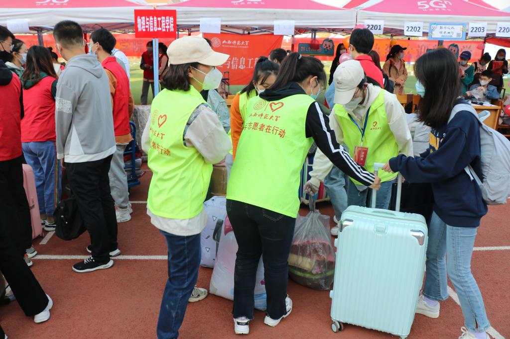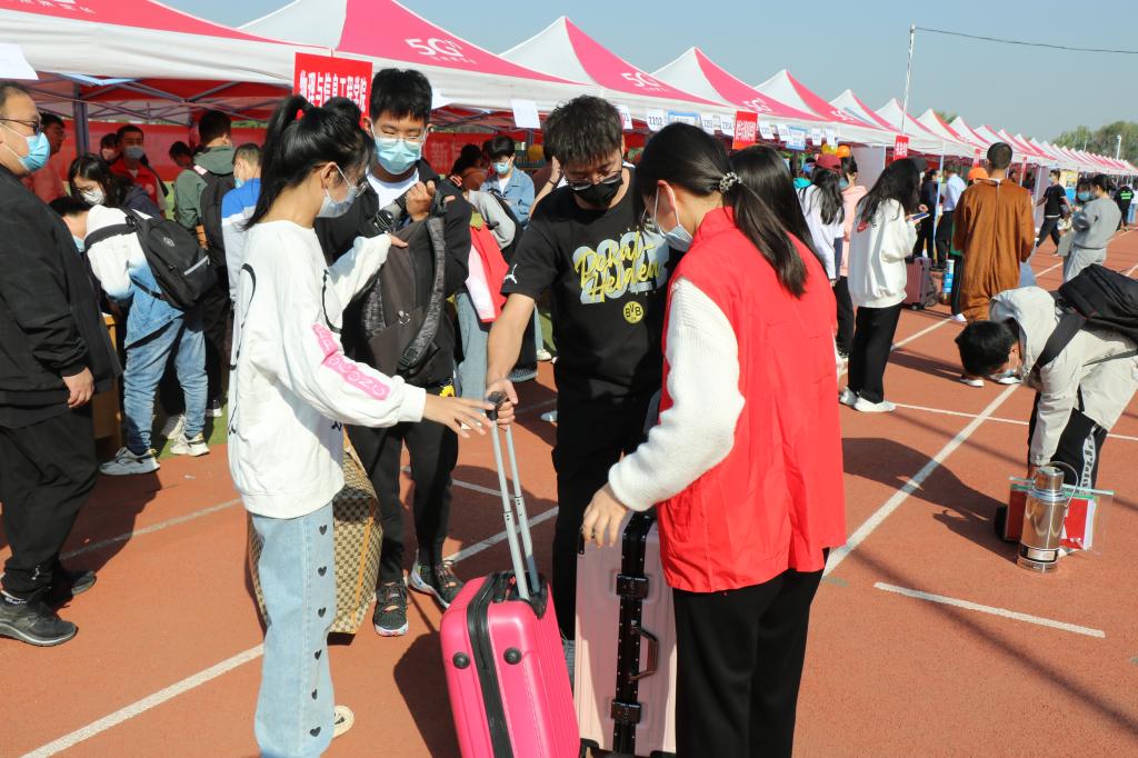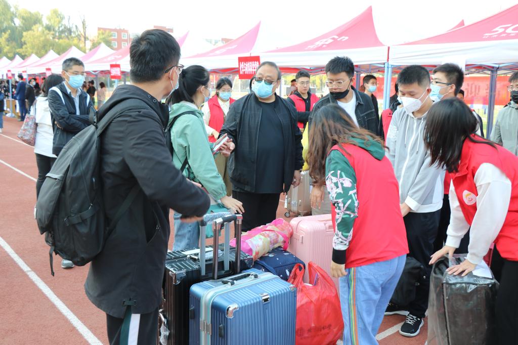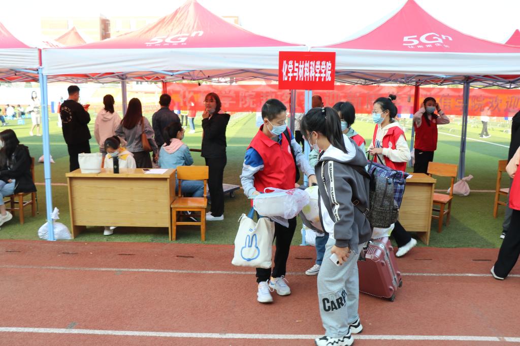 迎新期间,公司领导先后到各公司报到点迎接2022级新生、慰问奋战一线的志愿者们。公司领导还在报到点为新生解答疑惑,帮助新生搬运行李。