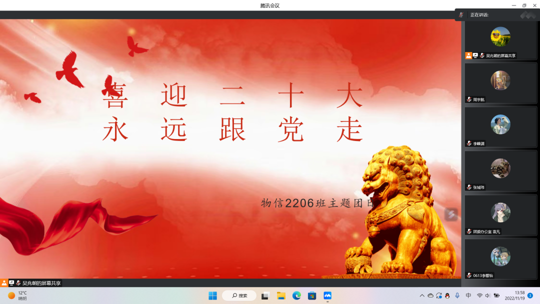 2203班团支书与同学们一起回顾了十九大以来中国的飞速发展,同时2203团支部以宿舍为单位,组织支部成员拍摄“深情表白祖国”视频,用视频抒发对祖国母亲的深厚情感,用实际行动践行党的二十大精神。