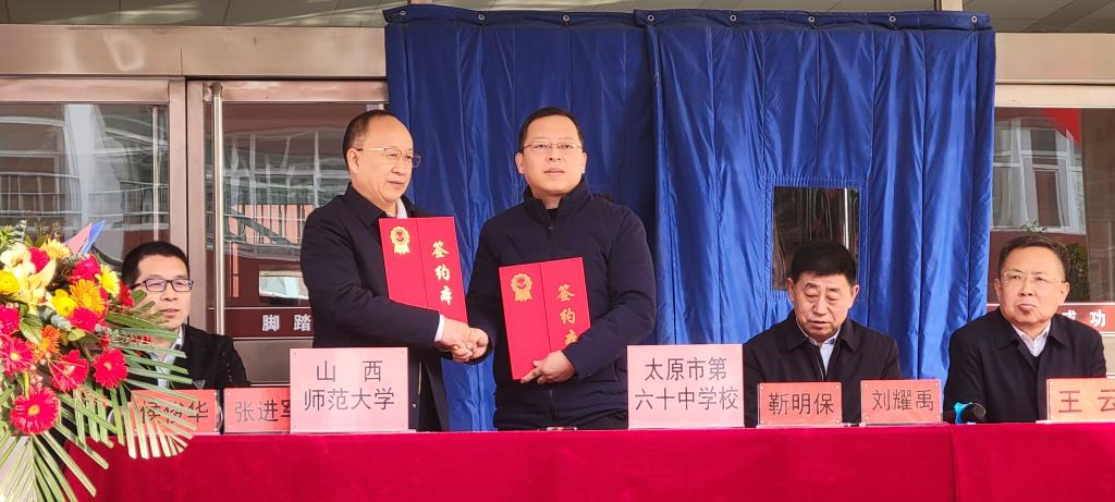张进军与太原第六十中学董事长靳明保签署了合作共建协议书。