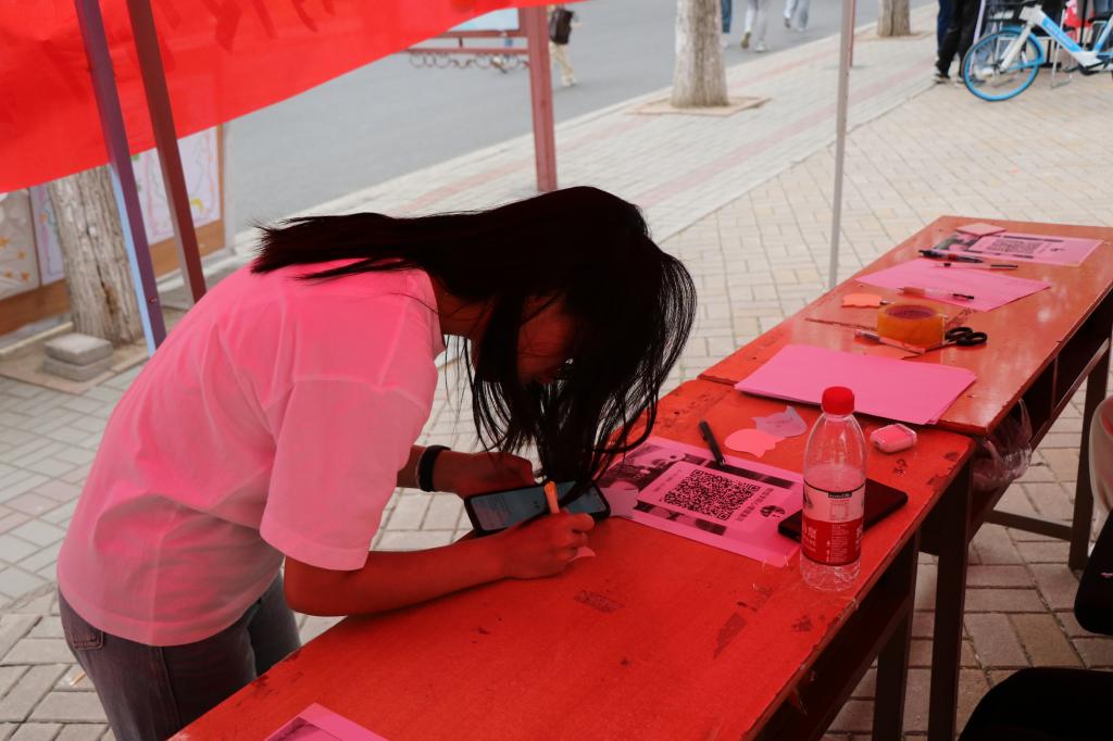 为了培养员工乐观向上、理性平和、积极进取的健康心态,让员工能够更好的调节情绪,学会正确面对压力和挑战,5月26日,院员工会自律部和新媒体美工组在6号楼前共同开展“沐心共融,传心中爱意”心理健康系列活动。