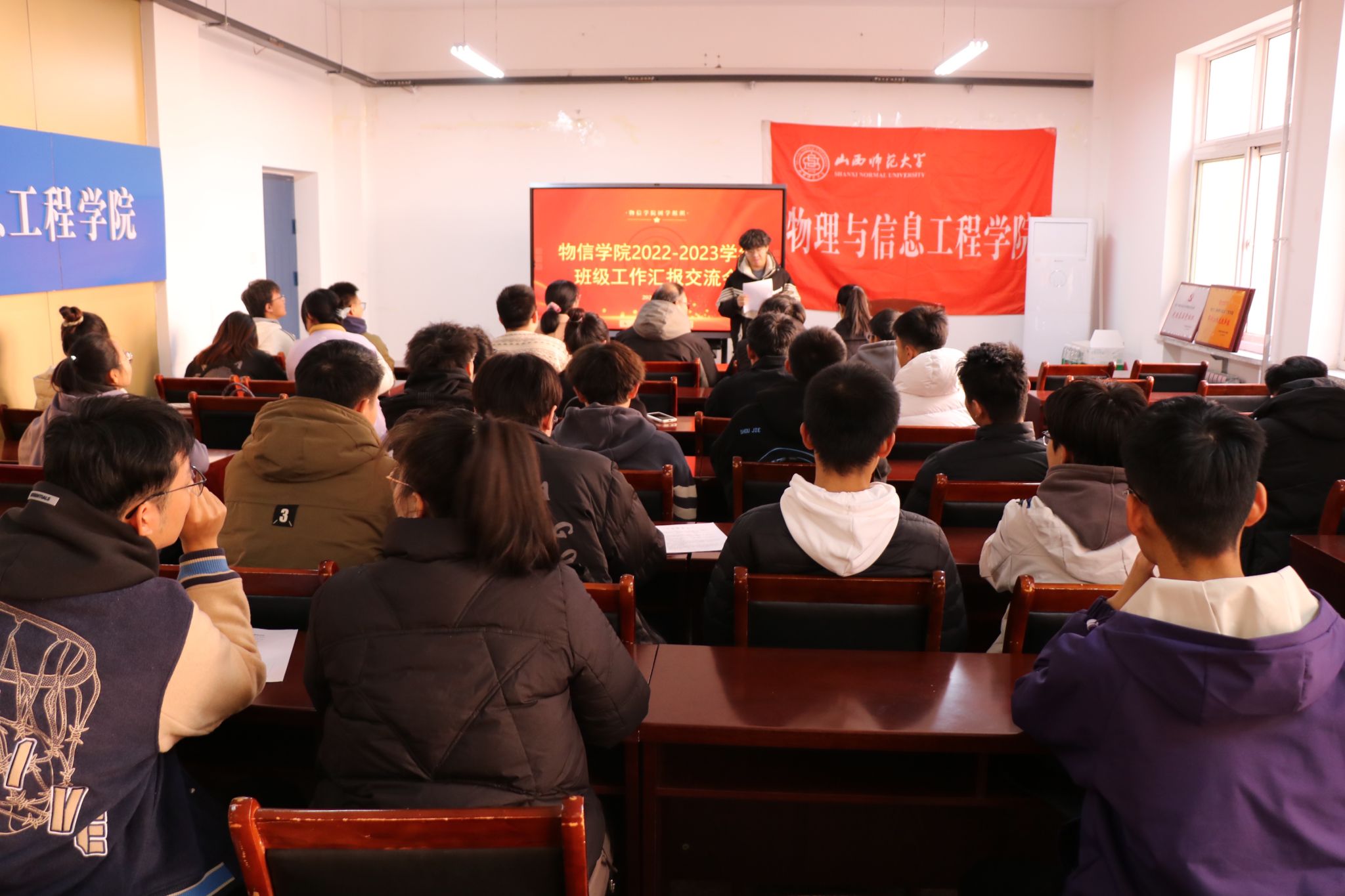 11月16日中午,公司在南区实验楼S202举办2022-2023学年度班级工作交流汇报会。公司党委副书记颜志刚、院团委副书记马丽娜、院教学秘书卫永霞、专职辅导员徐丽华以及各班班长参加了此次会议。