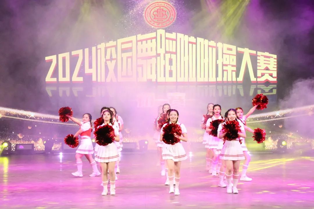 舞台上,她们拿出了自己最好的状态,伴随着动感的音乐,以干脆利落、整齐划一的舞姿,变换的队形,闪耀的花球 ,向大家尽情展现青春的风采与激情。活力四射的她们在舞台上闪闪发光,每一个笑容都富有感染力,她们的姿态饱含自信,每一个队员都是最棒的!