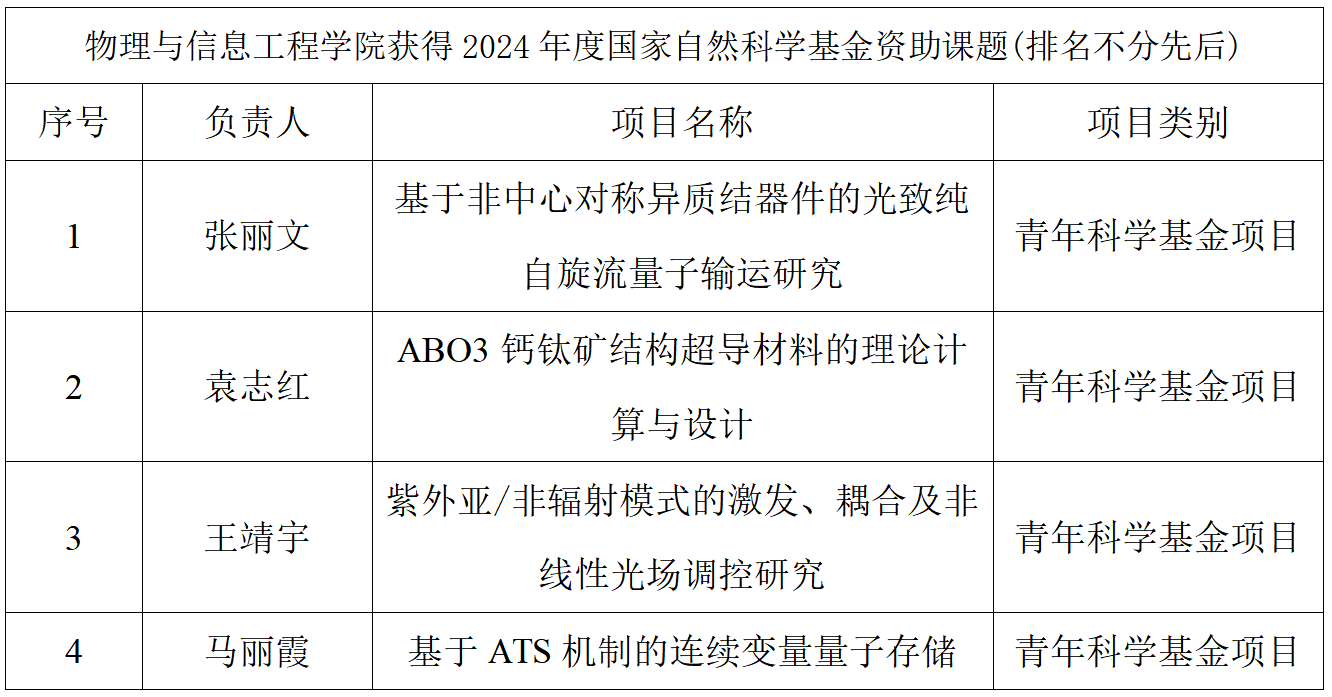 近日,国家自然科学基金委公布了2024年国家自然科学基金集中接收申请项目评审结果,公司获批国家自然科学基金青年项目4项。下一步,公司将设立科研创新团队支持计划,加速科研平台建设,争取面上项目有所突破,推动公司团队建设迈上新台阶。