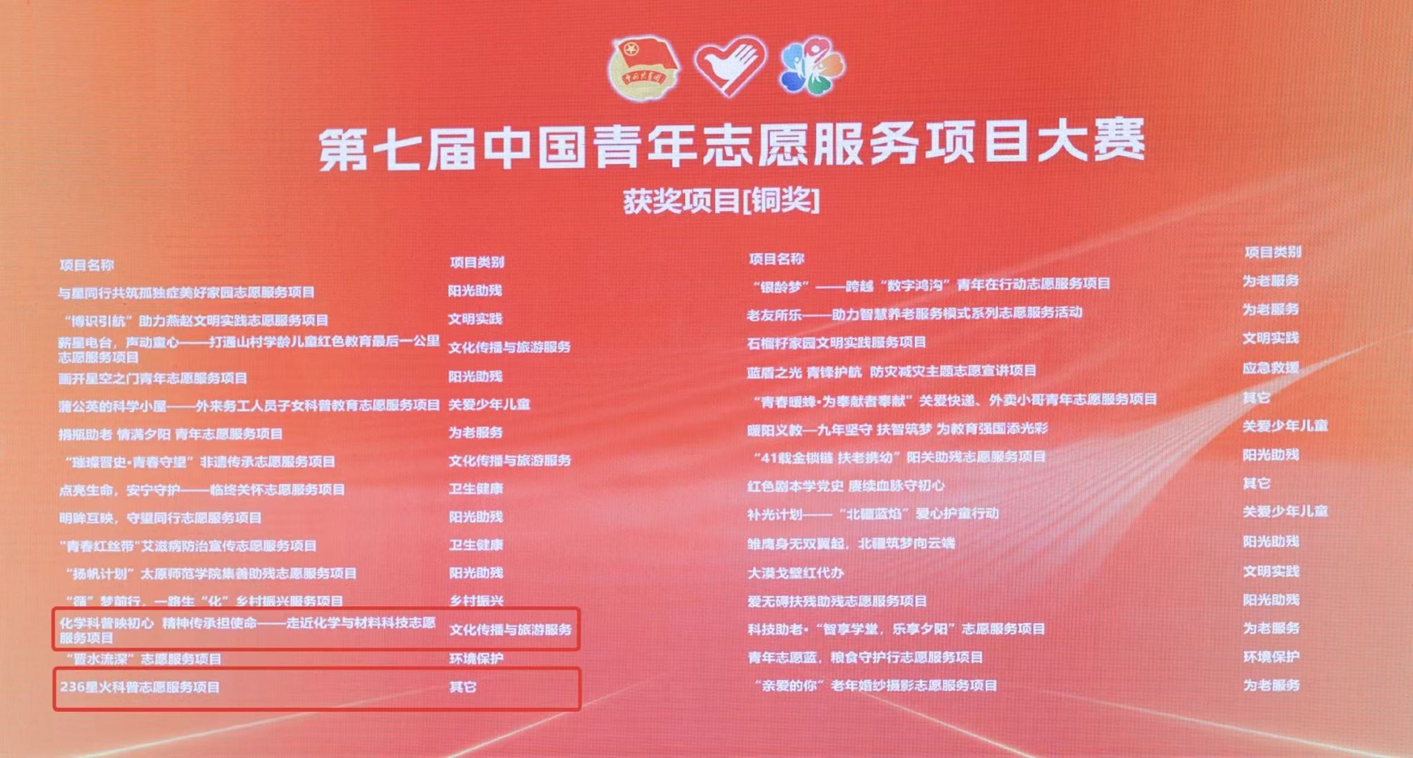 团中央和中国青年志愿者协会联合公布了2024年“七彩假期”志愿服务优秀团队、2024年关爱行动“少年儿童安全守护计划”管道保护宣传志愿服务优秀团队、2024年老员工科技志愿服务“馆校对接”项目“优秀团队”名单评选结果。公司236星火科普实践队、“躬耕励耘”科技志愿服务队 、“励耕”青年志愿者协会获评“优秀团队”。物信学子用实际行动服务社会,成长自我。
