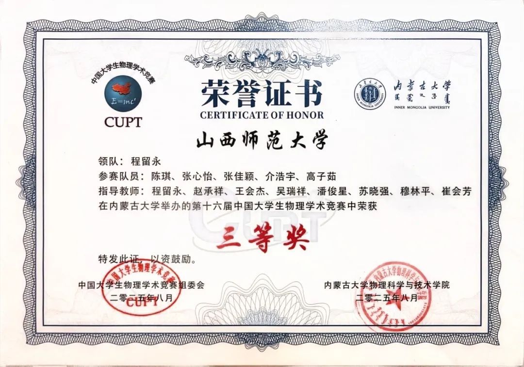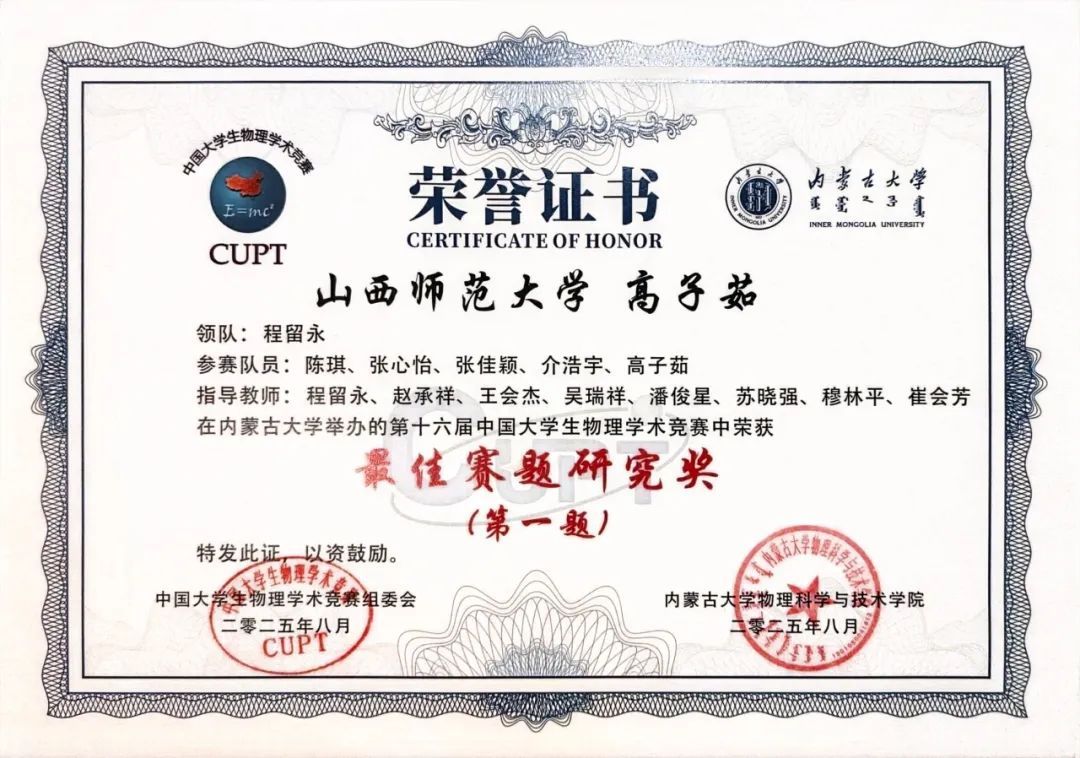 8月14日至18日,第十六届中国老员工物理学术竞赛在内蒙古大学成功举办。公司的代表队在此次竞赛中获得团体三等奖的荣誉,队员高子茹荣获个人最佳赛题研究奖,为公司赢得了荣誉。