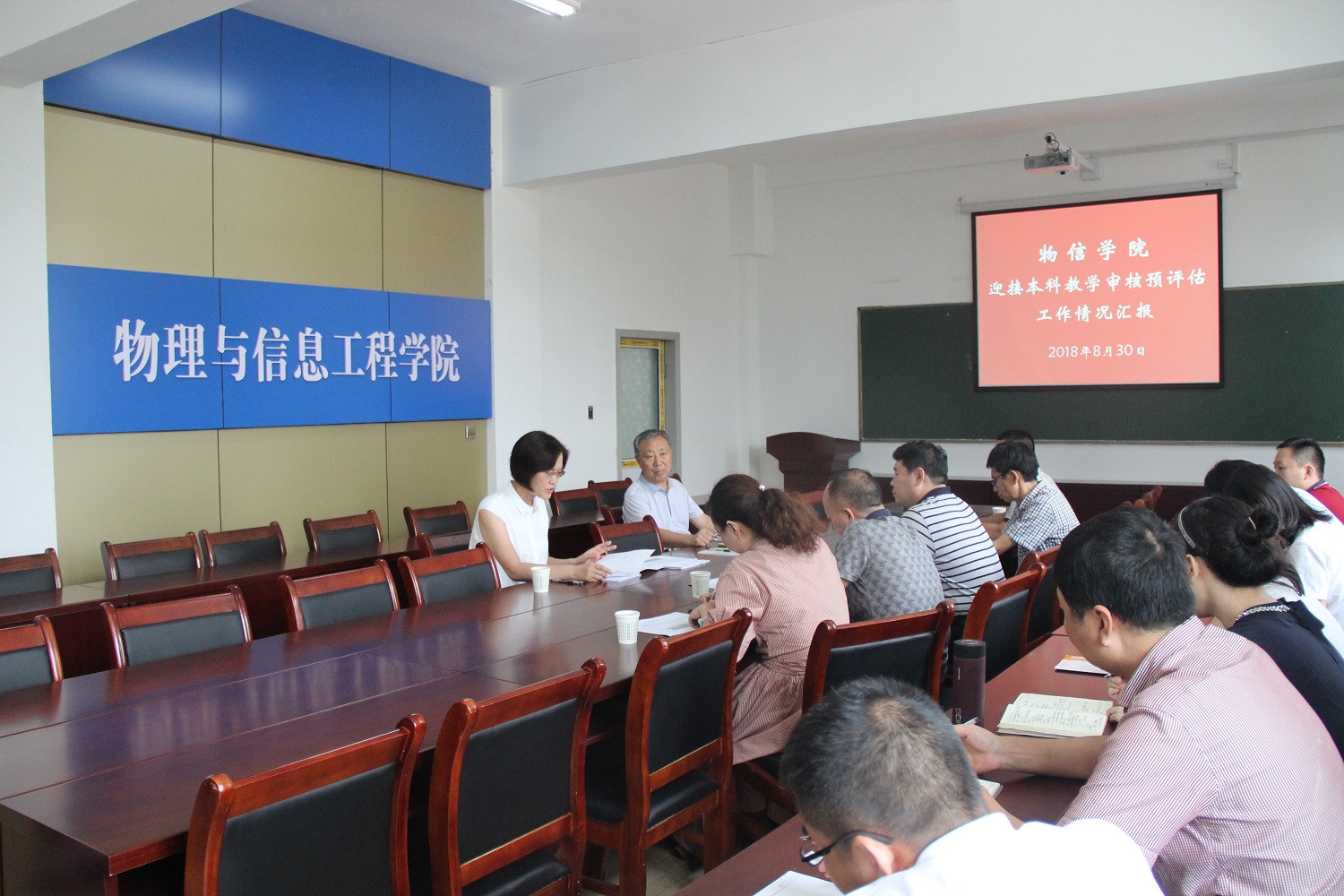 侯俊华副经理从本科教学审核评估的组织机构、宣传动员、安排部署、暑假以来9个方面的工作进展、存在的不足和下一步的工作计划等模块进行了详实的汇报。