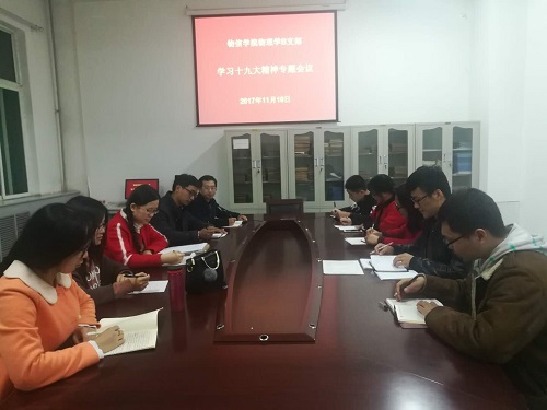 为深入学习贯彻党的十九大精神,2017年11月10日晚19点,mobile28365物理学B支部在04106教室召开了学习十九大精神专题会议。会议由支部书记徐小虎主持。