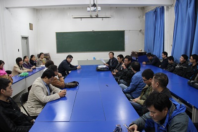 10月27日晚7:00在四号楼二层多媒体教室,公司召开学习第五次党代会精神会议,公司党委委员、公司党委书记张争宽,副经理张东海、苗向阳出席会议,全院教职工参加会议。会议由公司党委书记张争宽主持。