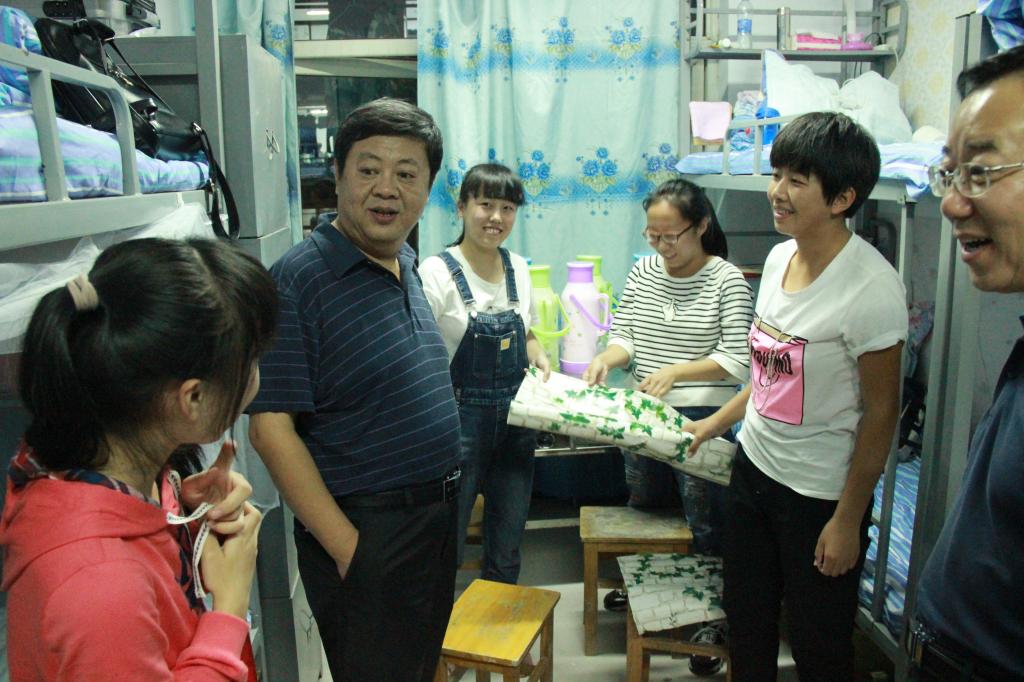 9月8日晚8:00,院领导张争宽、杨虎、陈向波在院团委书记杨亚东和全体新生辅导员和助理辅导员的陪同下深入公司员工所在的新松小区4号和5号员工公寓检查安全工作并看望慰问新同学。