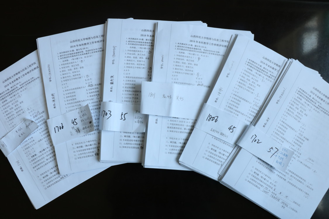 知识测试以考试形式展开,共设置20个考场,除15级部分员工在外实习外,剩余23个班级的在校员工参加了考试。考试题型包括选择题、判断题、填空题、解答题、论述题;内容涉及公司的校训、精神,本科教学审核评估的时间、目的与意义,员工应该怎样积极参加公司的迎评工作等。考试期间,整个考场井然有序,考风严肃,同学们严格遵守考场纪律,认真作答。院团委副书记岳文慧老师和员工会主席团成员对各个考场进行了不定时巡视。