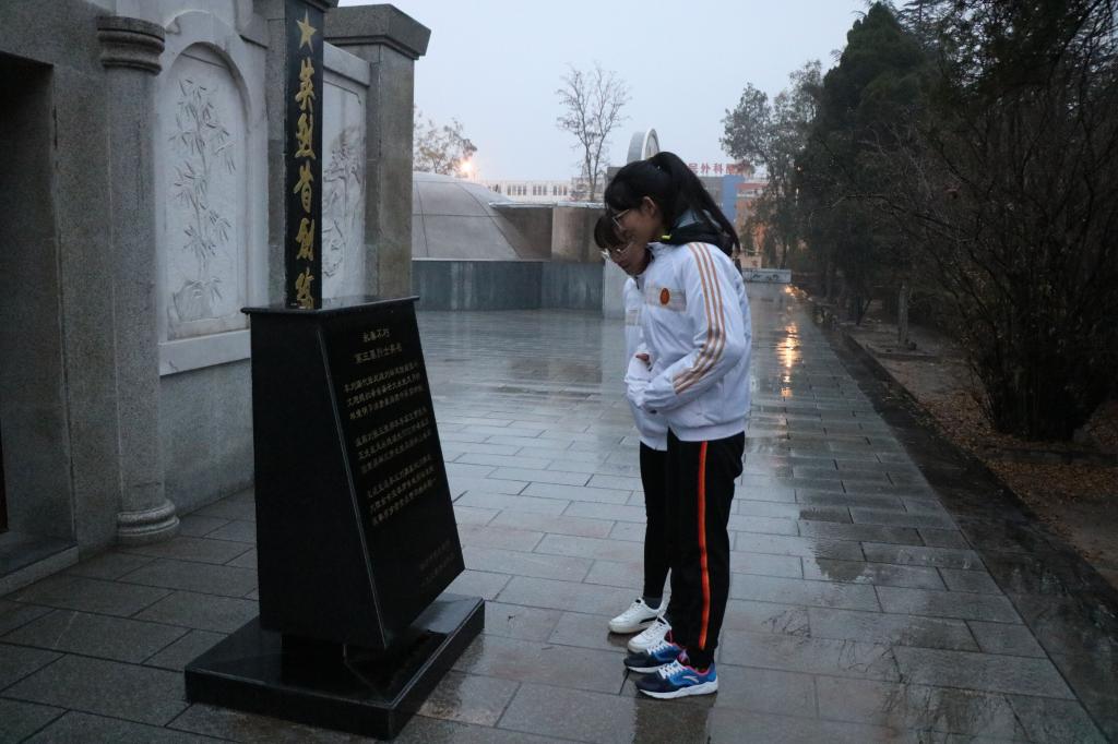 到达目的地之后,全体成员在烈士陵园前端立一分钟,表达对烈士们的哀思和敬意,一次次的鞠躬寄托着对烈士深深的祝福。