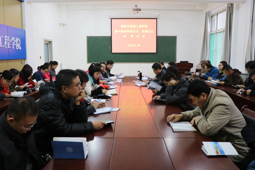 2018年11月30日下午5:00,公司在四号楼二层多功能会议室召开集中整治形式主义、官僚主义动员大会。公司党委书记陈向波,经理张进军,公司党委副书记王玮,副经理张东海、侯俊华出席会议,公司全体教职工参加了会议。会议由经理张进军主持。