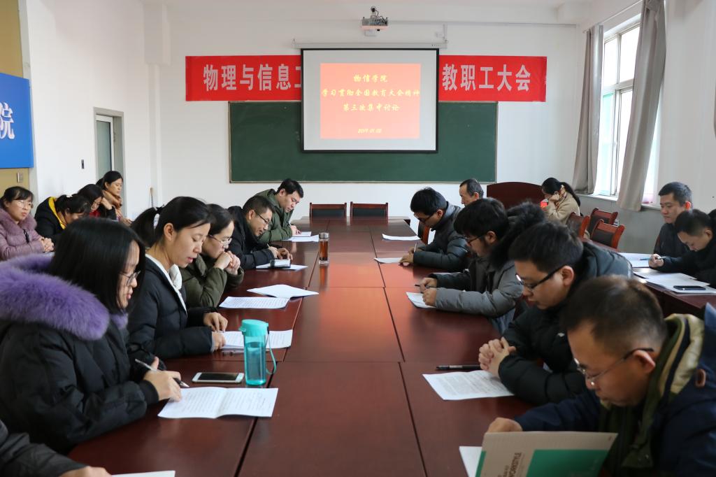 2019年1月2日下午3:00,公司在四号楼二层多功能会议室召开了学习贯彻全国教育大会精神第二次、第三次集中讨论会议。12个小组的24名教师代表分别代表本组参加公司第二次和第三次集中讨论会议,会议由公司党委书记陈向波主持。