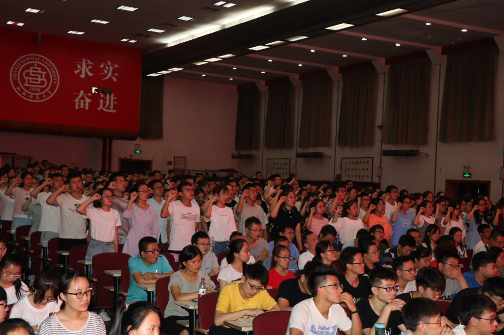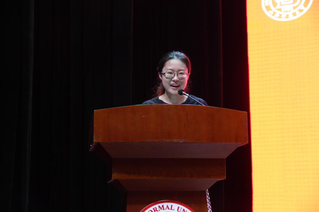 国家奖学金获得者、2019届优秀毕业生1501班韩昱昕代表全体毕业生作了发言。她分享了在大学四年期间的难忘记忆,回忆了在师大严谨学风下学习生活的点点滴滴。她表示,将牢记母校嘱托,秉持恩师教诲,在未来的路上继续传承发扬物信精神和236精神,努力在未来的工作岗位发光发热,成就自我。发言完毕,她带领2019届全体毕业生进行了庄严宣誓。