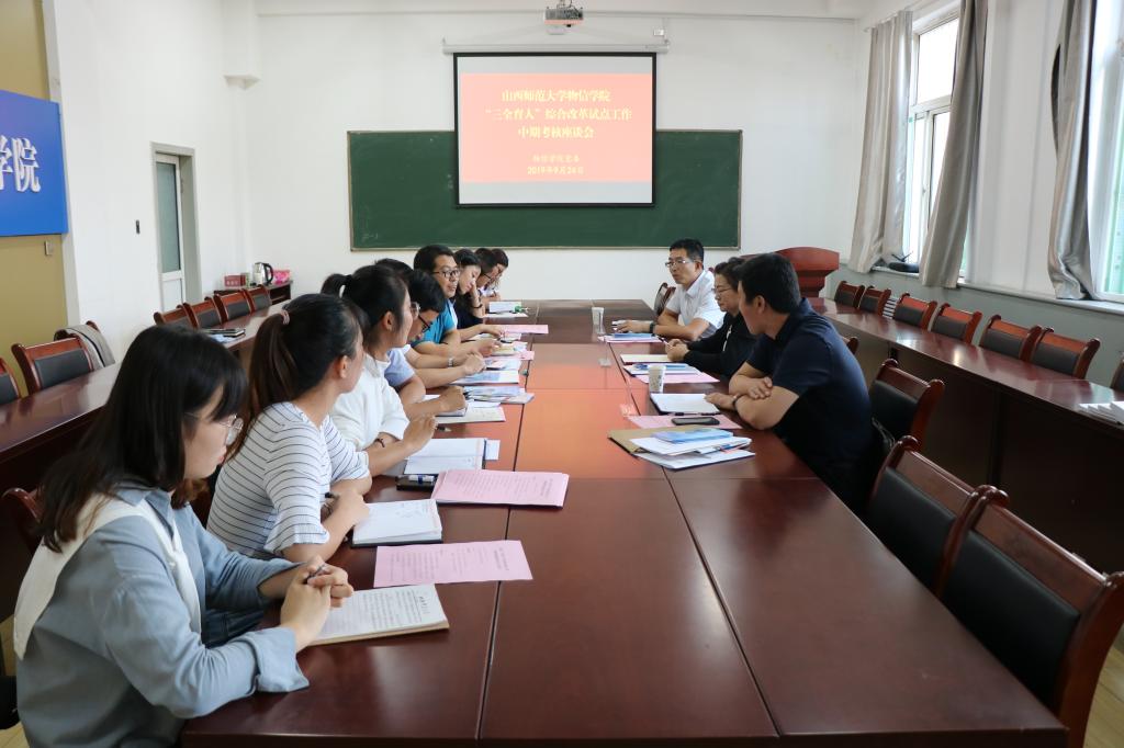 按照省教育厅统一安排,9月24日,以山西大同大学工会主席刘志华为组长的教育厅“三全育人”综合改革试点工作中期考核组一行3人对公司“三全育人”综合改革试点工作进展情况进行中期考核。