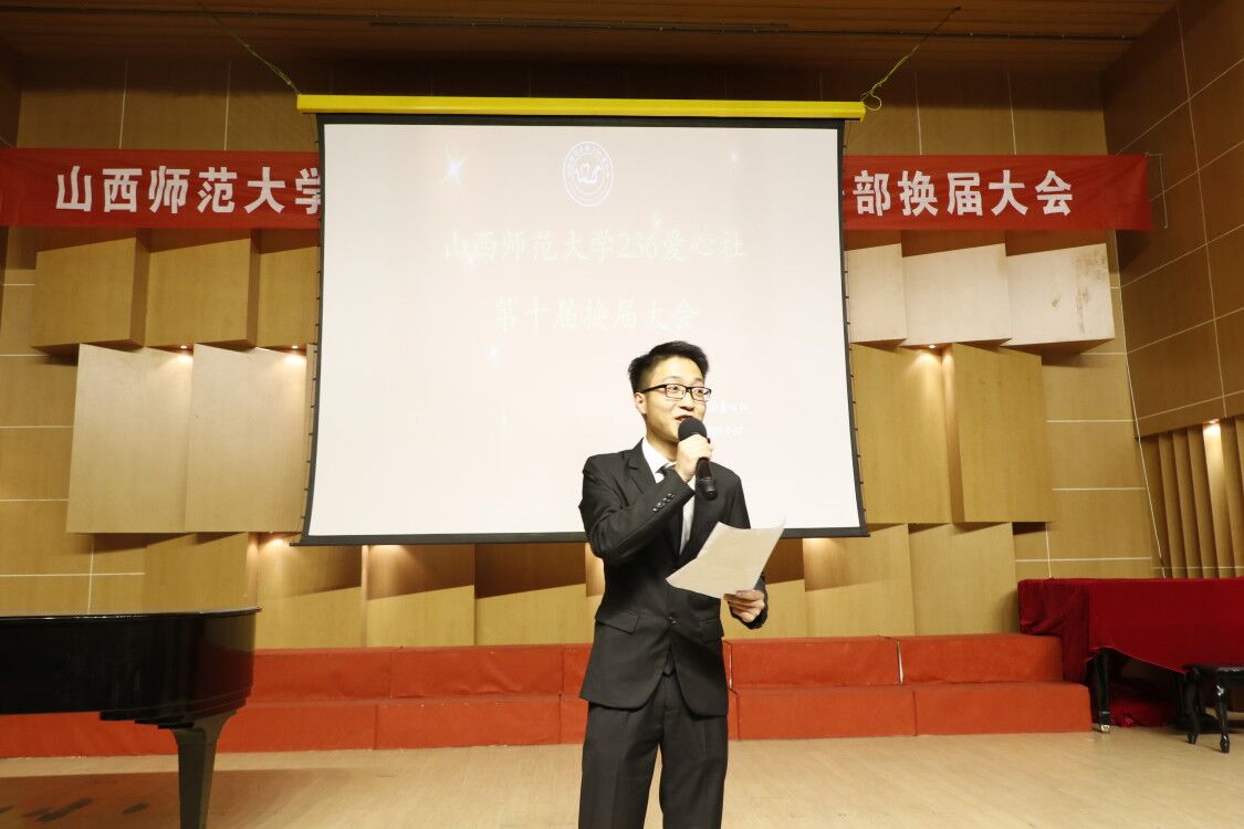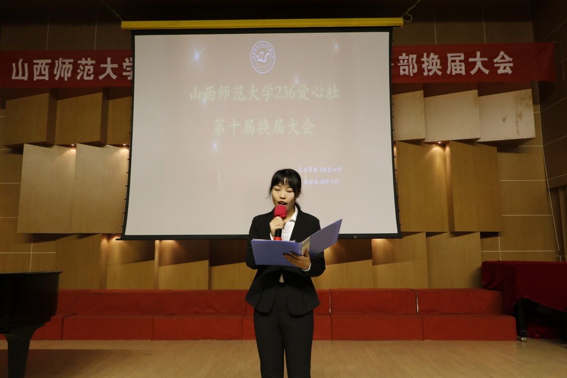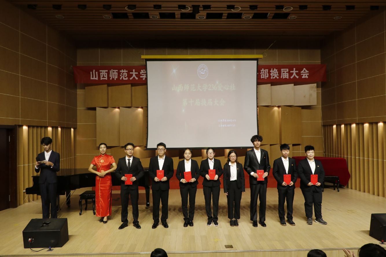 2019年9月27日晚7:30,236爱心社在10号楼音乐厅举办了第十届员工干部换届大会。第九届社团负责人、校社联和各兄弟社团代表以及两届各部门部长、大一部分同学参加了此次大会。大会由236爱心社文艺部部长师宝岚和部员卢豪杰主持。