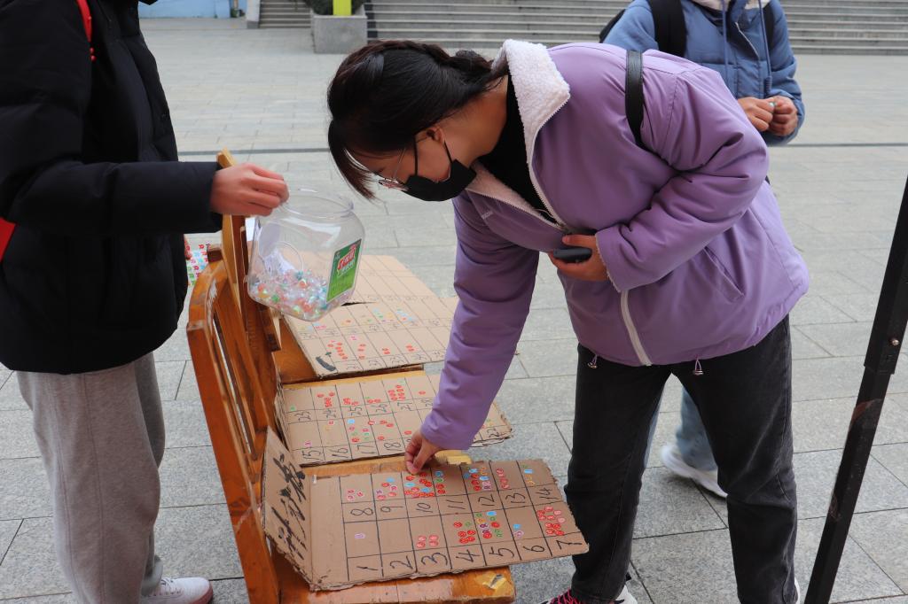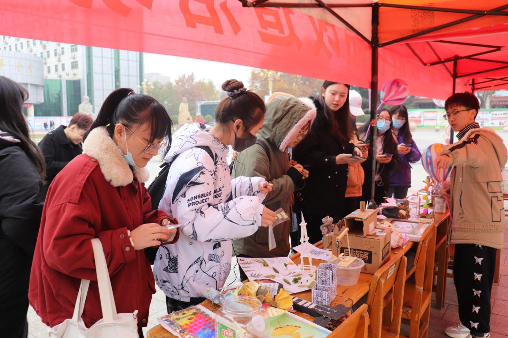 经过紧张激烈的现场评比环节,共有六十一件作品脱颖而出,进入了线下投票环节。创意的作品、精美的礼品、可爱的玩偶吸引了许多师生和居民驻足观看,并为自己喜欢的作品投出了宝贵的一票。