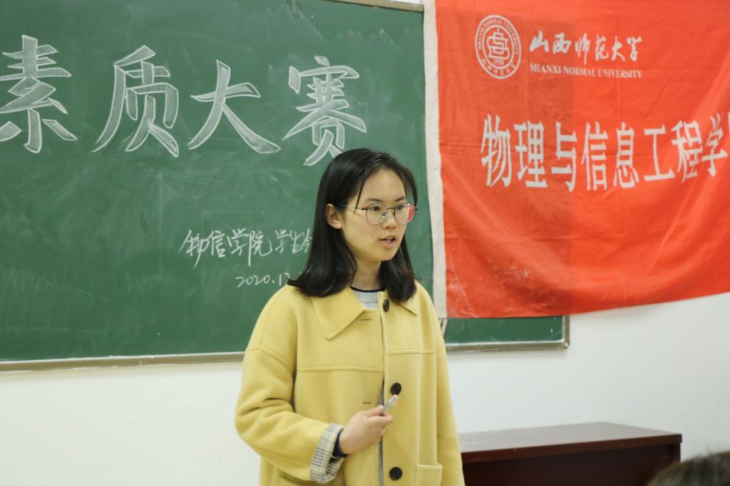 复赛中,来自二、三年级的18名参赛选手将自己精心准备的“平抛运动” “万有引力定律”等课程教案和课件进行了展示,授课过程中选手们各具特色,或语言生动、或思路严谨、或板书整齐、或教态得体,展现出良好的精神风貌。