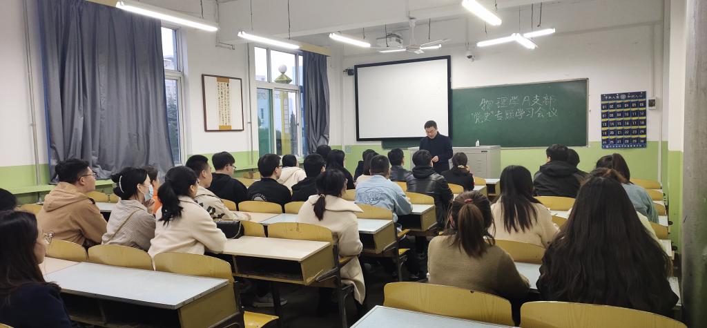 2021年3月8日18:30,物理学A支部在四号楼04212教室召开党史学习动员会暨第一次专题学习会议。支部全体党员和入党积极分子参加会议,会议由支部书记李俊生主持。