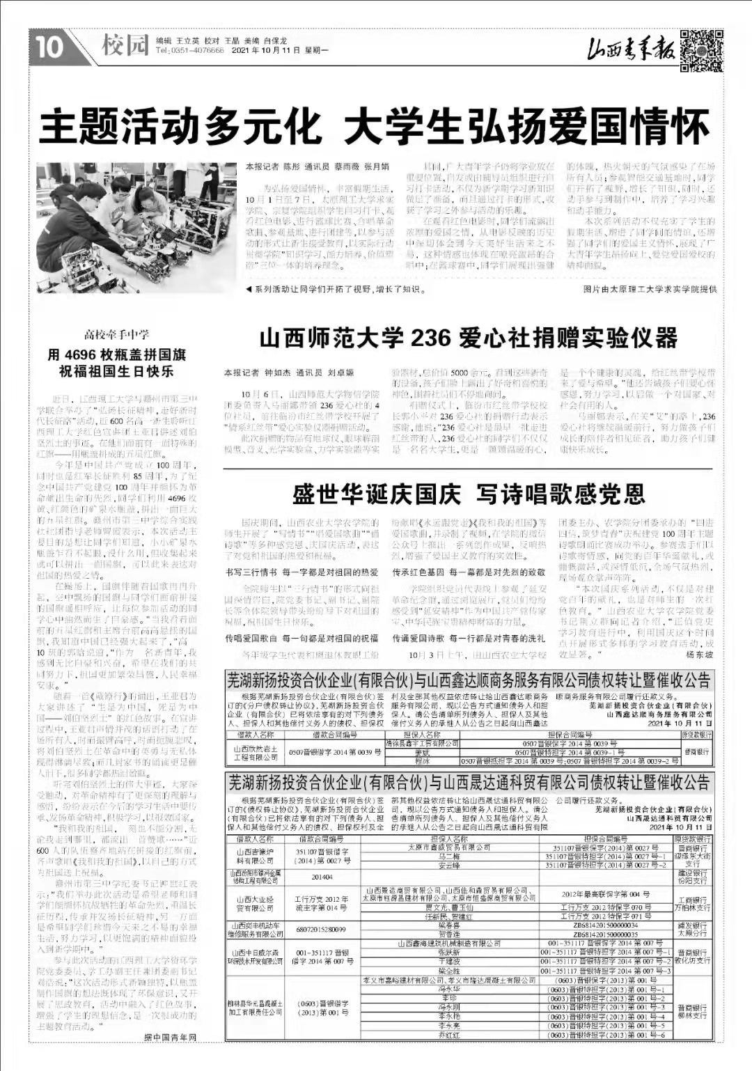 10月11日,山西青年报以“mobile28365正规网址236爱心社捐赠实验仪器”为题刊登报道了公司236爱心社向临汾红丝带公司进行的实验仪器捐赠活动。