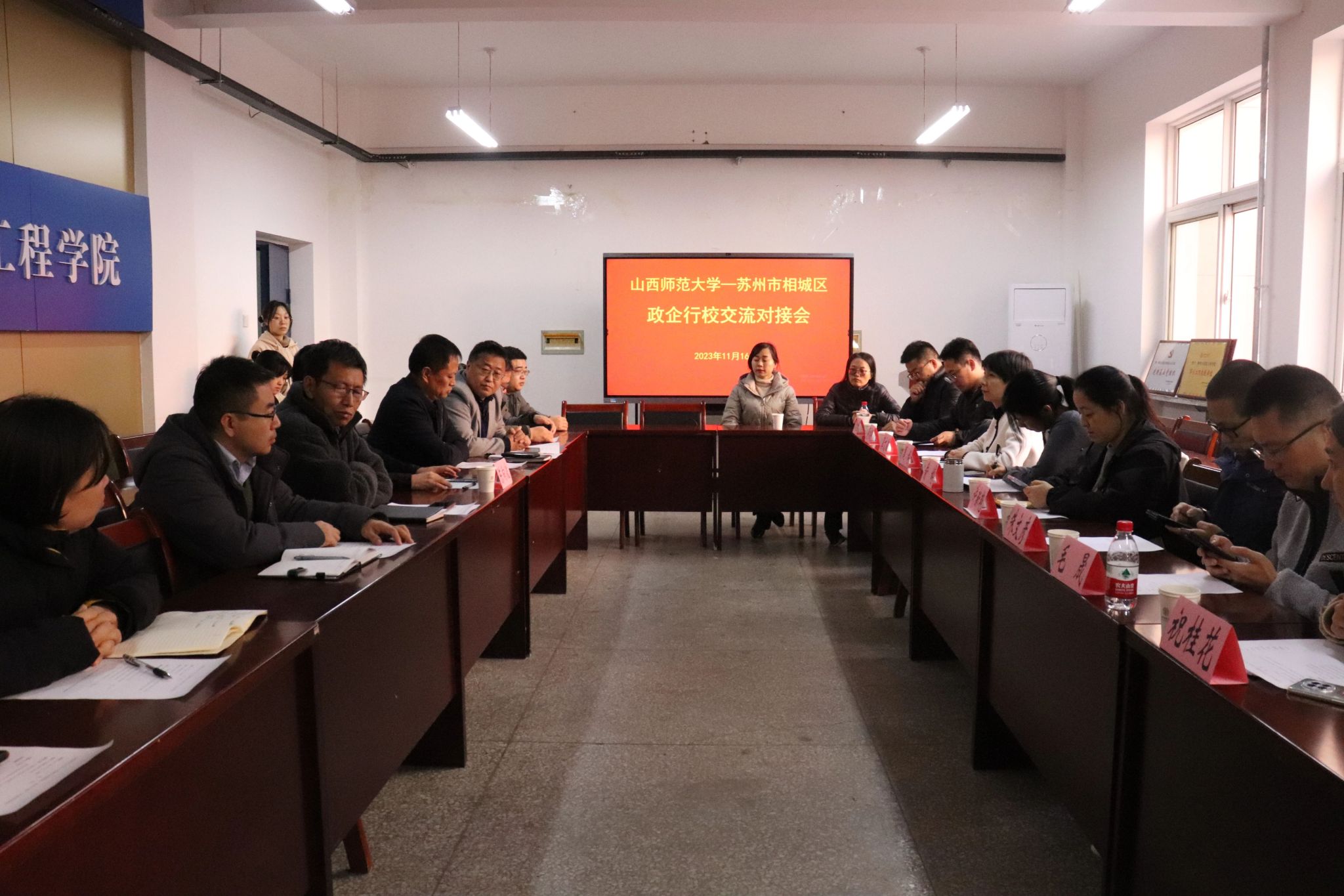 11月16日下午,公司与苏州市相城区“政企行校”交流对接会在实验楼s202会议室举行。国内合作部部长陈向波,苏州市相城区人力资源管理服务中心主任俞婷等领导及各企业代表,公司党委书记许国宝,副经理(主持行政工作)张东海,公司党委副书记颜志刚,副经理李俊生、韩建宁以及公司中层领导干部出席会议。副经理韩建宁主持会议。