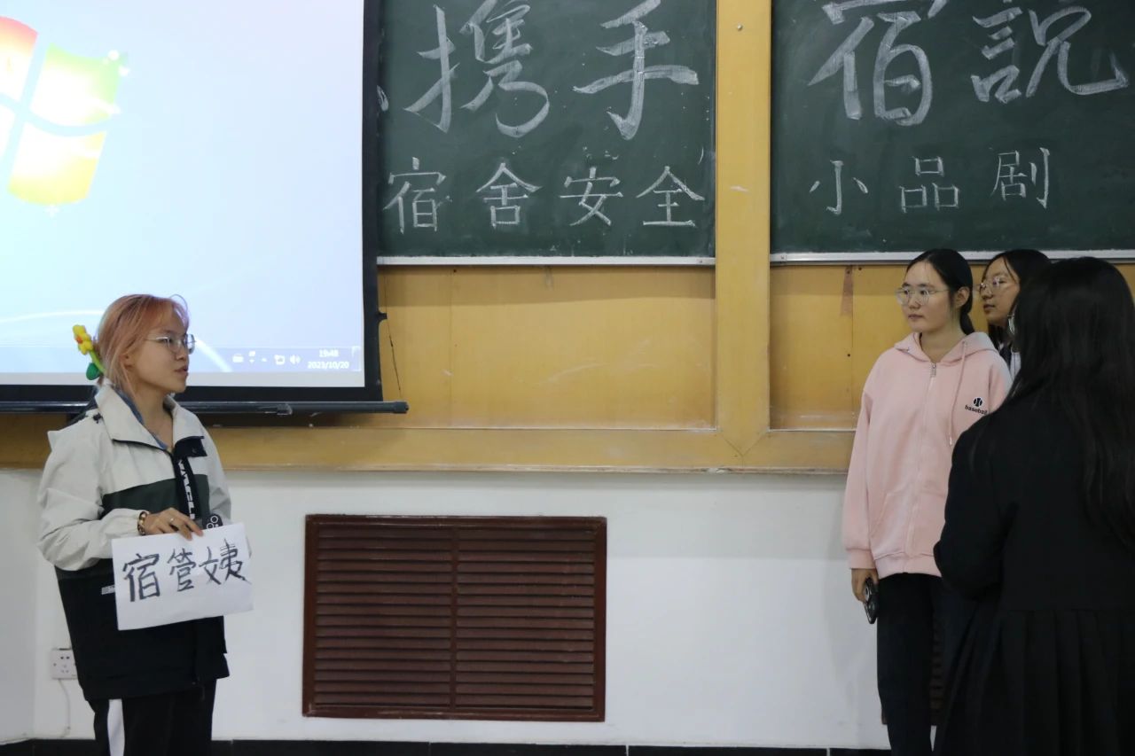 为了营造温馨和谐安全的宿舍文化氛围,增强员工的安全防范意识,公司员工会自律部于10月20日晚19:00在南区3408教室开展"'寓'你携手,'宿'说安全"宿舍安全小品剧活动。本次活动由自律部负责人计昕主持。