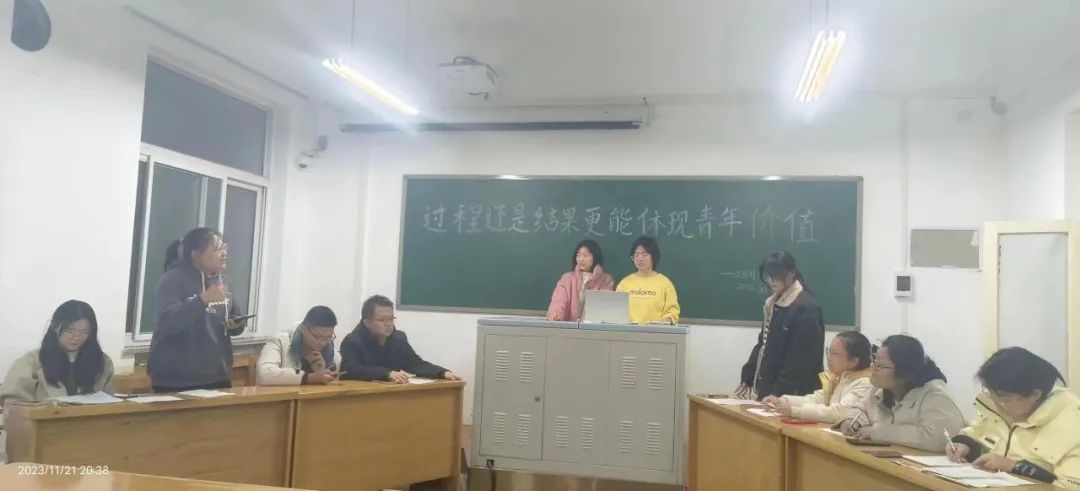 活动伊始,由翟文桢介绍辩论赛规则,在双方辩手自我介绍后,辩题为“过程还是结果哪个更能体现青年人的价值”友谊辩论赛正式开始。辩论过程中,双方辩手精彩交锋,言之以理、晓之以情、驳之有理、辩之有节,赢得同学们阵阵掌声。在自由辩论环节,同学们也认真讨论思考,积极参与辩论发言。