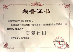 236爱心社入选了由中国青年报社主办的“寻找全国高校百强员工社团活动”全国高校“百强社团”、全国高校十大“最佳员工社团”(2018年6月),连续两年入选了由中国环境报社、中国环境网联合主办的“绿色离校·绿色感恩”全国校园公益行动“百强社团”(2019年9月、2020年9月), 236爱心社实践队连续两年在“绿色引航”全国中小学环教行动暑期社会实践评选活动中荣获“优秀暑期实践队”(2019年9月、2020年9月),曾被中国扶贫基金会授予“爱心小队”荣誉称号(2019年9月),被省人社厅、团省委授予“山西青年五四奖状”荣誉称号(2018年5月),被团山西省委授予“五四红旗团支部”荣誉称号(2013年5月)。236爱心社作为唯一的高校社团代表在山西省高校思想政治工作推进会议上作了典型发言(2017年5月)。此外,还6次被评为mobile28365正规网址优秀员工社团, 4次被评为mobile28365正规网址暑期“三下乡”社会实践活动优秀服务队,3次荣获mobile28365正规网址和谐青春奖章,3次被评为mobile28365正规网址“红旗团支部”“先进团支部”。