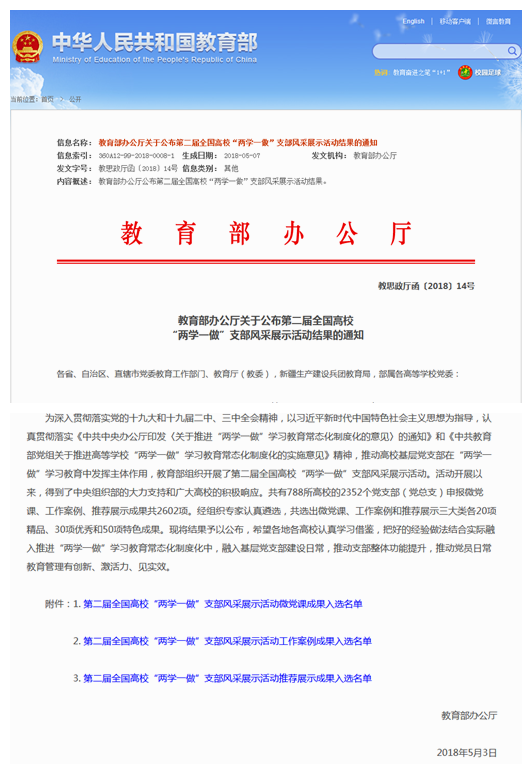 近日,由教育部组织开展的第二届全国高校“两学一做”支部风采展示活动结果公布,mobile28365员工236党支部“爱的足迹——‘三基建设’暨236爱心社十年成长成果展”入选第二届全国高校“两学一做”支部风采展示活动推荐展示成果之员工党支部推荐展示精品成果,位列全国十强。