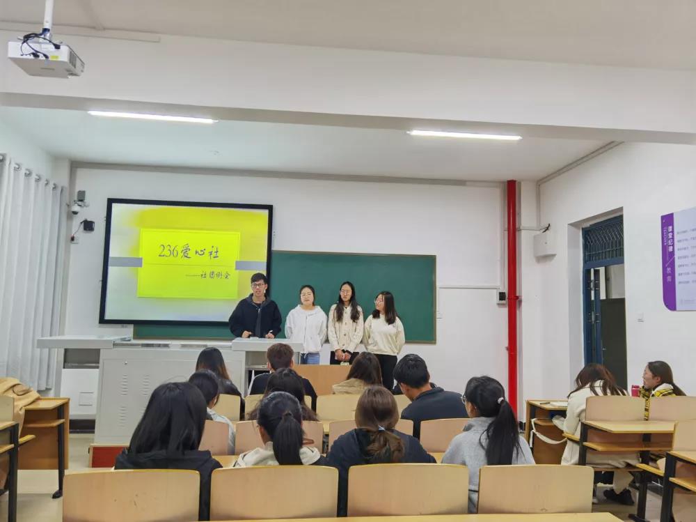 11月1日,236爱心社在4309教室召开了本学期第一次社团例会,236爱心社主要负责人和各兴趣小组成员参加了会议。本次会议由236爱心社副社长丁福增主持。