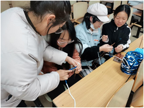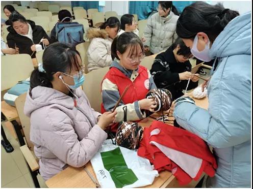 活动中,同学们分成小组接受工作人员手把手、一对多的现场教学。很多同学都是第一次拿起毛线和毛衣针,虽然大家的动作还不熟练甚至略显笨拙,但是因为心中有爱,大家都认真地学习、相互探讨和帮助。经过几天的努力,一条条满载着暖暖温情的围巾陆续编织完成。这些爱心围巾和同学们亲手写下的爱心贺卡也将送到偏远山区的小朋友手中,陪他们一起度过这个寒冷的冬天。